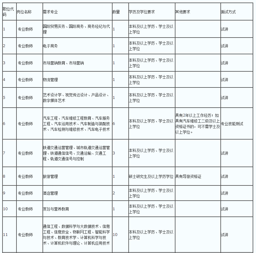 具体招聘职位及要求见《贵州经贸职业技术学院2019年公开招聘工作人员岗位及要求一览表》(附件1)。