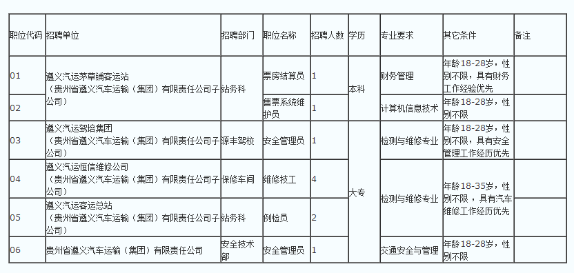 贵州省遵义汽车运输(集团)有限责任公司公开招聘工作人员简章